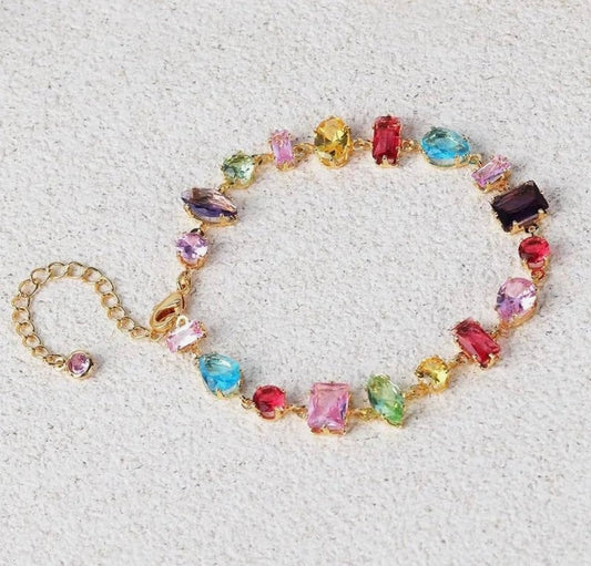 18K Gold Plated Multicolour Rhinestone Bracelet