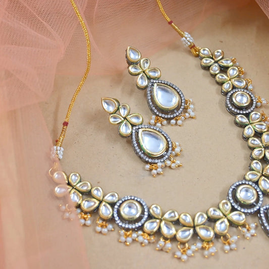Brinda Black Metal Kundan Jewellery Set